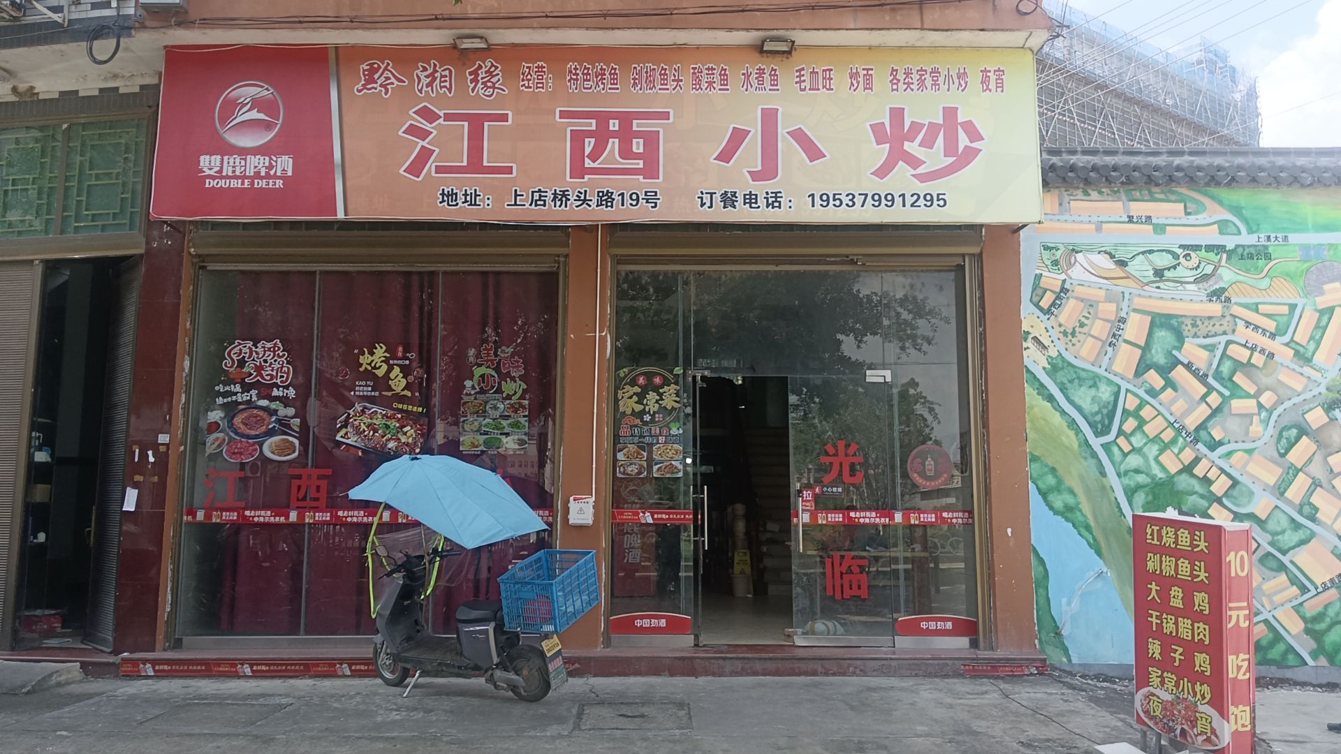 江西小炒(交通路店)位于上店中路与新建路交叉口北60米(上店村综合楼)乡镇以下级政府及事业单位西南方向115.705米的位置。