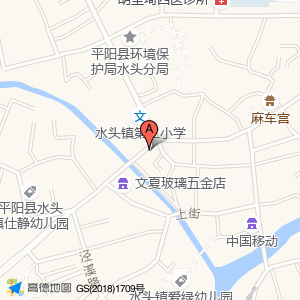 水头镇第二小学占地面积约:5019㎡和温州市平阳县江山西路与金山路交叉口西南20米相距 ⇄ 39.1279m