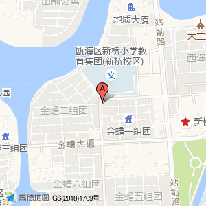 小吴煎包(金蟾一组团店)位于靖宁街温州市瓯海区新桥第一小学(瓯海区新桥第一小学学校少年宫)文化宫东北方向71.5456米的位置。