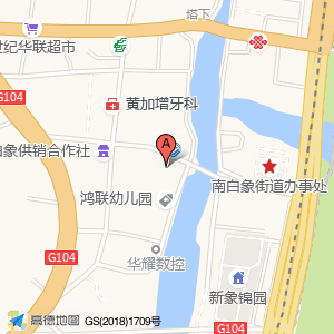 沿104国道南白象段向北行驶350米右转
