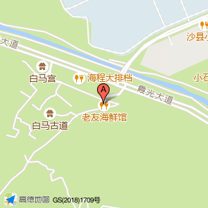 老友海鲜馆位于霞光大道与海航路交叉口西220米(白马宫)旅游景点西北方向221.309米的位置。