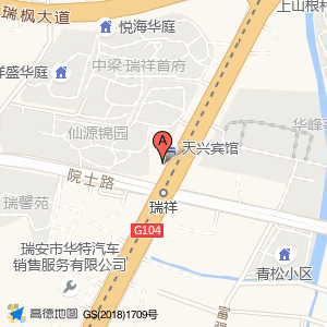 天兴宾馆(富周西路)占地面积约:362㎡和温州市瑞安市院士路和104国道交叉口相距 ⇄ 21.8738m