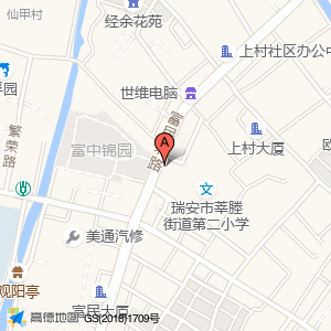 瑞安市莘塍街道第二小学占地面积约:11079㎡和温州市瑞安市莘塍街道上村富民北路44号相距 ⇄ 32.439m