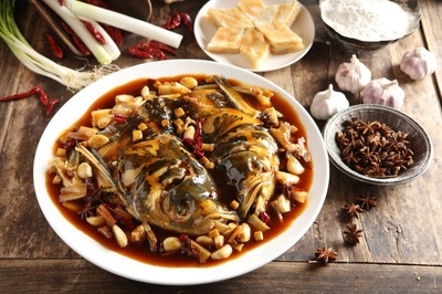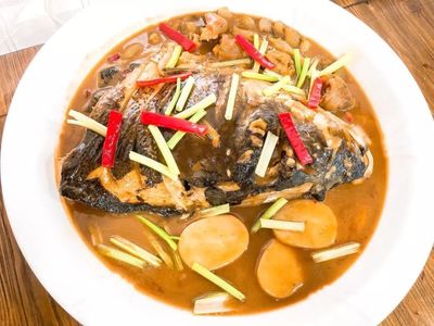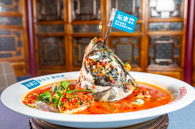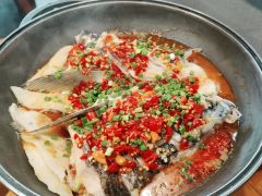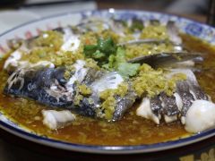 金牌鱼头位于灵昆街道灵昆东路16号(天杨宫)旅游景点东北方向323.378米的位置。