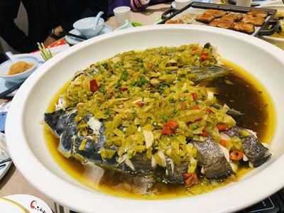 金牌鱼头位于灵昆街道新灵景园南门外昆和园对面(王相村居民中心)乡镇以下级政府及事业单位东南方向603.002米的位置。