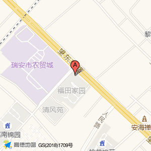 福田家园占地面积约:10930㎡和温州市瑞安市福田家园东北门西北70米相距 ⇄ 0m
