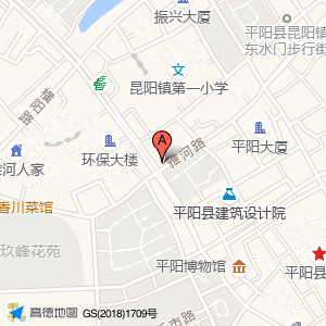 平阳县机关幼儿园总园占地面积约:1384㎡和温州市平阳县昆阳镇雅河路360号相距 ⇄ 47.1859m