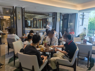 临港餐馆位于鳌江镇墨城工业园西南(浙江大凯特钢科技有限公司)公司东南方向529.484米的位置。
