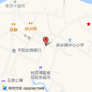 珊冬杂粮煎饼位于麻步镇玉泉路61号(平阳农商银行(广源分理处))农村商业银行西方向222.483米的位置。