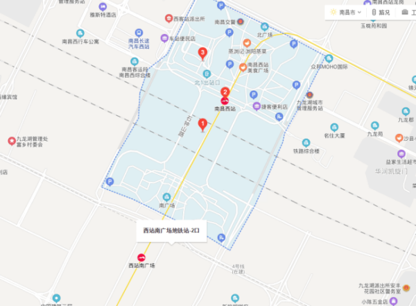 ➤沿广场路向南步行1305米向右前方行走