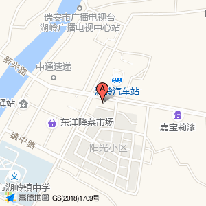 湖岭汽车站占地面积约:4710㎡和浙江省温州市瑞安市湖岭镇阳光小区(瑞枫线)阳光小区(工商南路与镇中路交叉口东140米)相距 ⇄ 36.803m