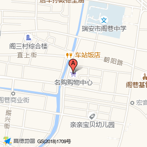 名购购物中心位于阁巷镇中大街192号(瑞安市阁巷中学)中学东北方向269.074米的位置。