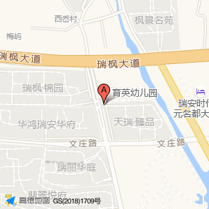 育英幼儿园(瑞枫大道)占地面积约:367㎡和浙江省温州市瑞安市安阳街道安阳北路天瑞·臻品(瑞安瑞祥新区安阳路与文庄路交汇处)相距 ⇄ 15.8712m