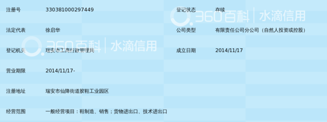 | 所属类型:专营店 | 地址:浙江省温州市瑞安市仙降街道环镇路浙江环球鞋业(330省道附近) |