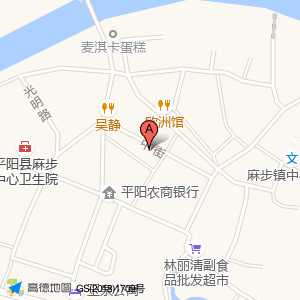 水星家纺(麻步中街店)位于平阳县(麻步村)村庄级地名南方向61.2819米的位置。