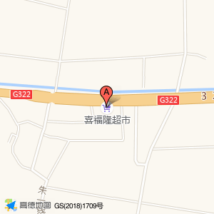 喜福隆超市位于朱一线与朱仁路交叉口西340米(格利村老年协会)社会团体相关南方向438.272米的位置。