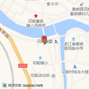 司前小学占地面积约:6803㎡和浙江省温州市泰顺县司前畲族镇振兴路55号司前镇小(司前镇沿溪小学路)相距 ⇄ 35.781m