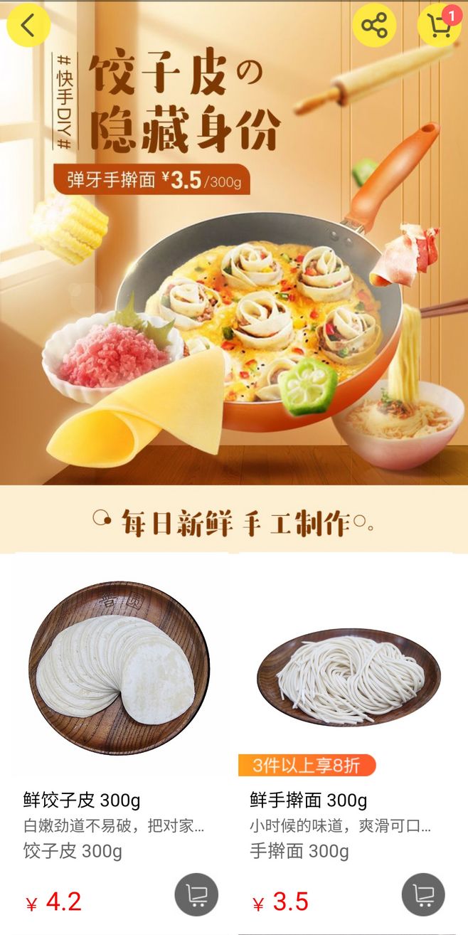 新鲜面饺子皮是浙江省温州市下的农副产品市场,评分等级:A级|3.8,所属商圈:仕兴路