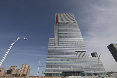 沿体育场东路向东南行驶517米左转