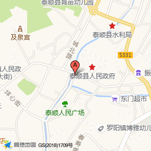 泰顺县人民政府占地面积约:6409㎡和浙江省温州市泰顺县罗阳镇广场路泰顺县人民政府(罗阳镇东大街6号)相距 ⇄ 27.3654m