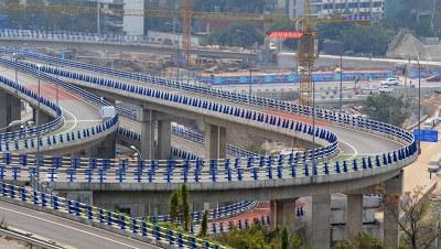 沿104国道向东北行驶2.7千米直行进入隧道