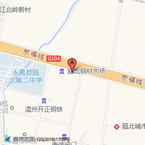中厚不锈钢板位于京福线辅路与浦东北路交叉口西南120米(永嘉县瓯北第二中学)中学西方向203.515米的位置。