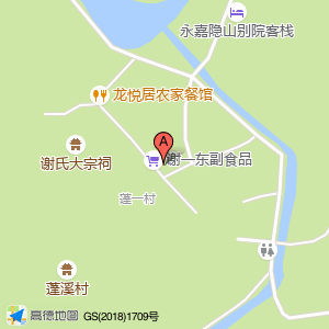 谢一华副食品店位于鹤盛镇蓬溪一村(墟里民宿(永嘉贰号店))住宿服务相关南方向337.243米的位置。