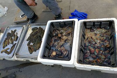 ☸坐轮船来阿道海鲜批发宝鑫菜场B017(宝鑫菜市场店)在附近港口码头:消防码头|距离:7991m (浙江省温州市乐清市蒲海路娄岙小学)下船