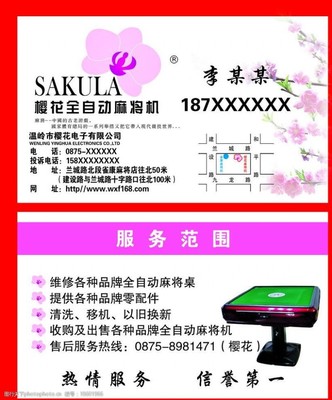 樱花全自动麻将机(仙清路店)是浙江省温州市下的专营店,评分等级:A级|3.5,所属商圈:仙清路
