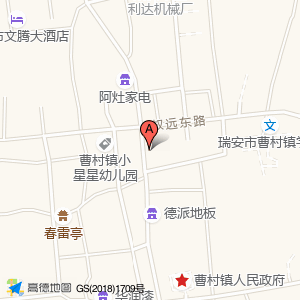 瑞安市曹村镇实验幼儿园占地面积约:4445㎡和浙江省温州市瑞安市曹村镇钱马线瑞安市曹村镇实验幼儿园(曹村镇)相距 ⇄ 37.1888m