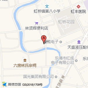 林家小铺位于虹桥镇西工业区b-3号(乐清市红成电子有限公司)机械电子东南方向260.253米的位置。