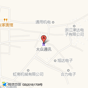 大众通讯位于虹桥镇信岙工业区信达路12号(微塑电子)机械电子东北方向187.498米的位置。
