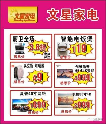 文星家电超市是浙江省温州市下的家电电子卖场,评分等级:A级|3.7,所属商圈:幸福东路