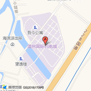 温州国际机电城电子商务中心占地面积约:6477㎡和温州市龙湾区温州市龙湾区海滨街道纬一东支路国际机电城B14幢105号相距 ⇄ 41.389m