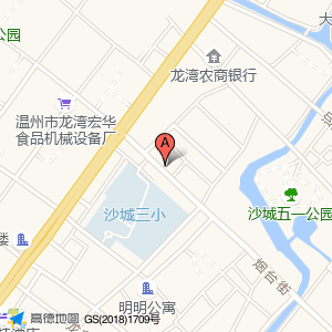 沙城三小占地面积约:16305㎡和温州市龙湾区烟台街与永强大道交叉口东南100米相距 ⇄ 39.6203m