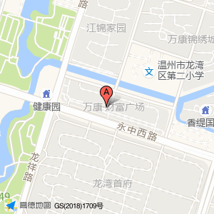万康·财富广场占地面积约:19459㎡和温州市龙湾区永中西路万康财富广场119号(广发银行旁边)相距 ⇄ 0m