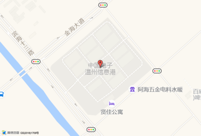 阿海五金电料水暖位于金海二道与滨海十二支路交叉口东南220米(百威(温州)啤酒有限公司)公司东南方向563.785米的位置。