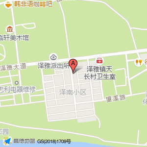 建利通讯(泽南小区店)位于天长村泽雅大道102号(泽雅医院)综合医院东北方向226.96米的位置。