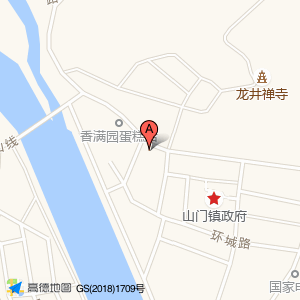 胡亦加香烟店位于山门镇红军公园红军出征门(龙井禅寺)寺庙道观东北方向284.815米的位置。
