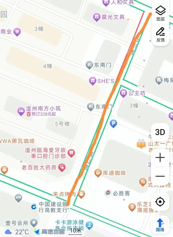 ⓞ沿温州大道向东骑行816米右转