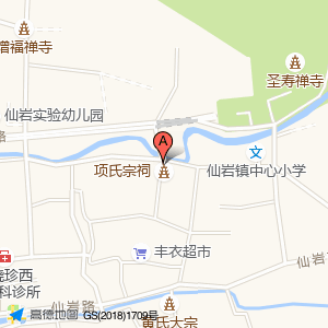 项氏宗祠占地面积约:116㎡和温州市瓯海区虎溪路与仙竹线交叉口西220米相距 ⇄ 5.72403m
