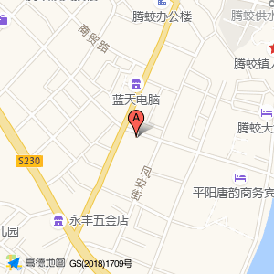 福明食品店位于平阳县(腾蛟村)村庄级地名东北方向74.5378米的位置。