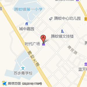 时代广场位于腾蛟镇镇小路40号(腾蛟镇第一小学)小学西北方向273.695米的位置。