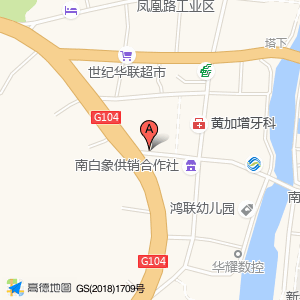 白象胖子酒水饮料配送位于104国道南白象段与新象东路交叉口南100米(美达家具)家具城南方向124.559米的位置。