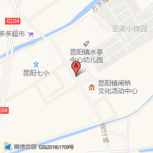 闸桥街水暖店位于昆阳镇(昆阳七小)小学西方向174.755米的位置。