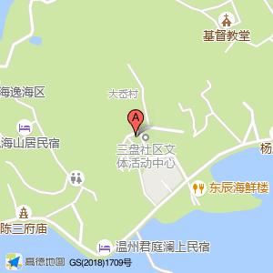伟星管位于三盘度假村(北岙街道三盘中路42号)(温州·洞头老舍民宿)住宿服务相关东北方向311.33米的位置。