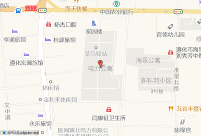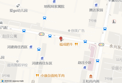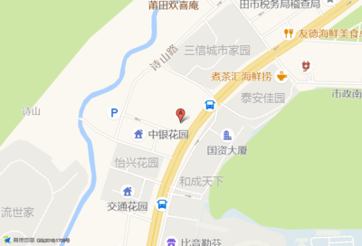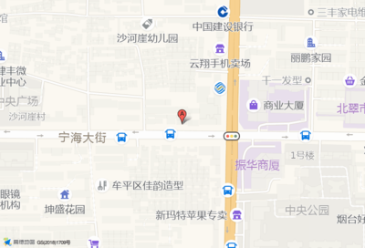 前程商铺(海湾家园三区店)位于银城花园西门南110米(爱科美语)培训机构西北方向130.369米的位置。