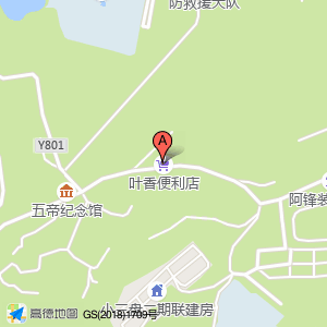叶香便利店位于小小段附近(五帝纪念馆)纪念馆西方向194.772米的位置。