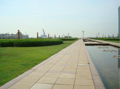 ➤沿滨河路向东南步行106米直行