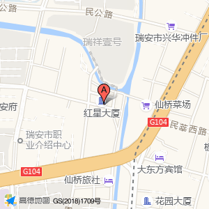 红星大厦占地面积约:1258㎡和温州市瑞安市仙桥西路与莘阳大道交叉口西北160米相距 ⇄ 0m